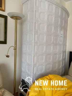 Im Erdgeschoss ist die Küche mit Esszimmer, ein sehr geräumiges Wohnzimmer mit einem wunderschönen weißen Kachelofen, ein Badezimmer und ein großer Eingangsbereich